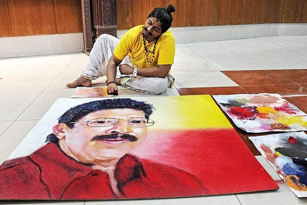 I wanted to popularize this art. So, I want to spread this art form through doing portraits like Mahatma Gandhi, Subhash Chandra Bose etc.…during election campaign I did social awareness in many places through their art. It is less investment art using sand in any place. We express our feeling through this art. So, I gave new face to the sand art by doing portraits of wellknown people (Sudha Murthy, Mujumdar Sha ect) in Hyper Elastic Rangoli (Sand Art) that is H.D Quality- it will take 24hours Flash Sand Art (Rangoli) I am drawing it in both the hands in 12 minities, Realistic Rongoli (Sand Art) it looks like real picture- it will take 7hours, for Events and for Festivals also I am drawing the different type of Rangoli (sand art).