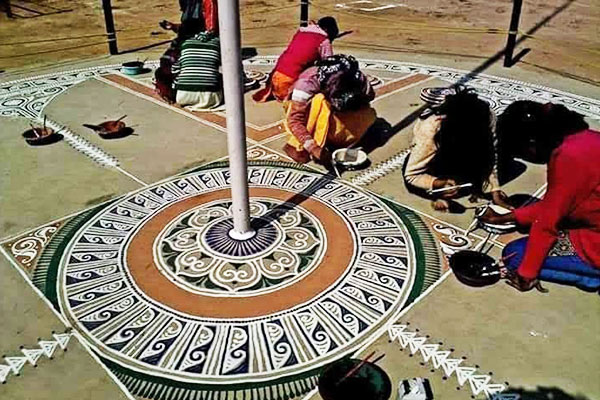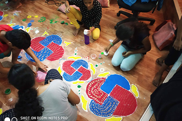 Yoga reduces stress, and helps to lower blood pressure and regulate mood. Yoga as an art form and a science based on movement. It’s just like how a vibration can led to a geometric pattern, the reverse is also possible. When a person looks at such a geometric pattern, it manifests into vibrations inside the mind of the observer which in turn calms the mind. And this is exactly what the Rangoli (Sand Art) does to one’s mind. That is, it has a soothing effect.