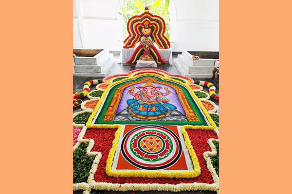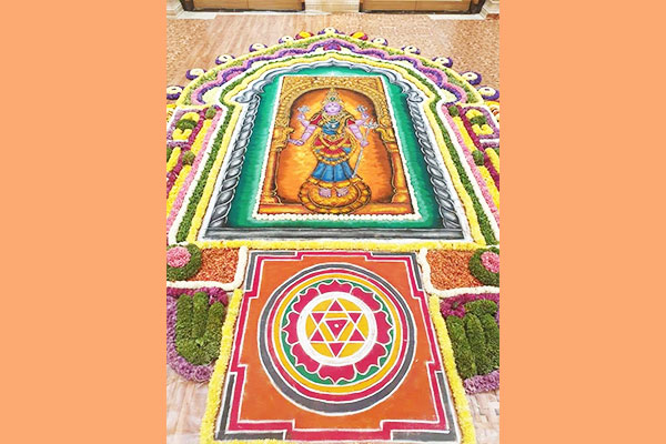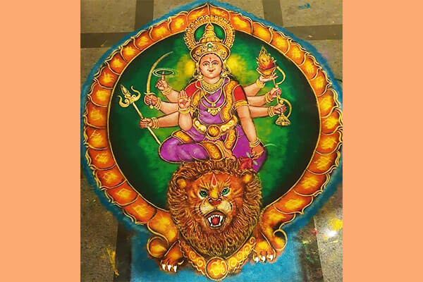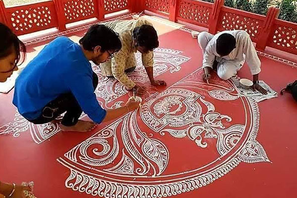 Rangoli is a traditional folk art, adorned on floors during Festive seasons like Diwali, Dussehra,Ganesh Chaturthi, Navratri, Onam, Pongal and it is considered sacred. Meant to welcome deity and repel evil forces which ushers happiness and prosperity. Rangoli is also called by different names in different regions of India like kolam in Tamil Nadu, Alpana in Bengal and Maharashtra, Pookalam in Kerala, Mandana in Rajasthan, Aripan in Bihar, Saathiya in Gujarat but fondly as Rangoli throughout India. Designing is based from geometrical shapes to diyas, ganesha and bird’s patterns with rice flour, slurry, powder colours and flower petals in combination to portray exclusive designs.